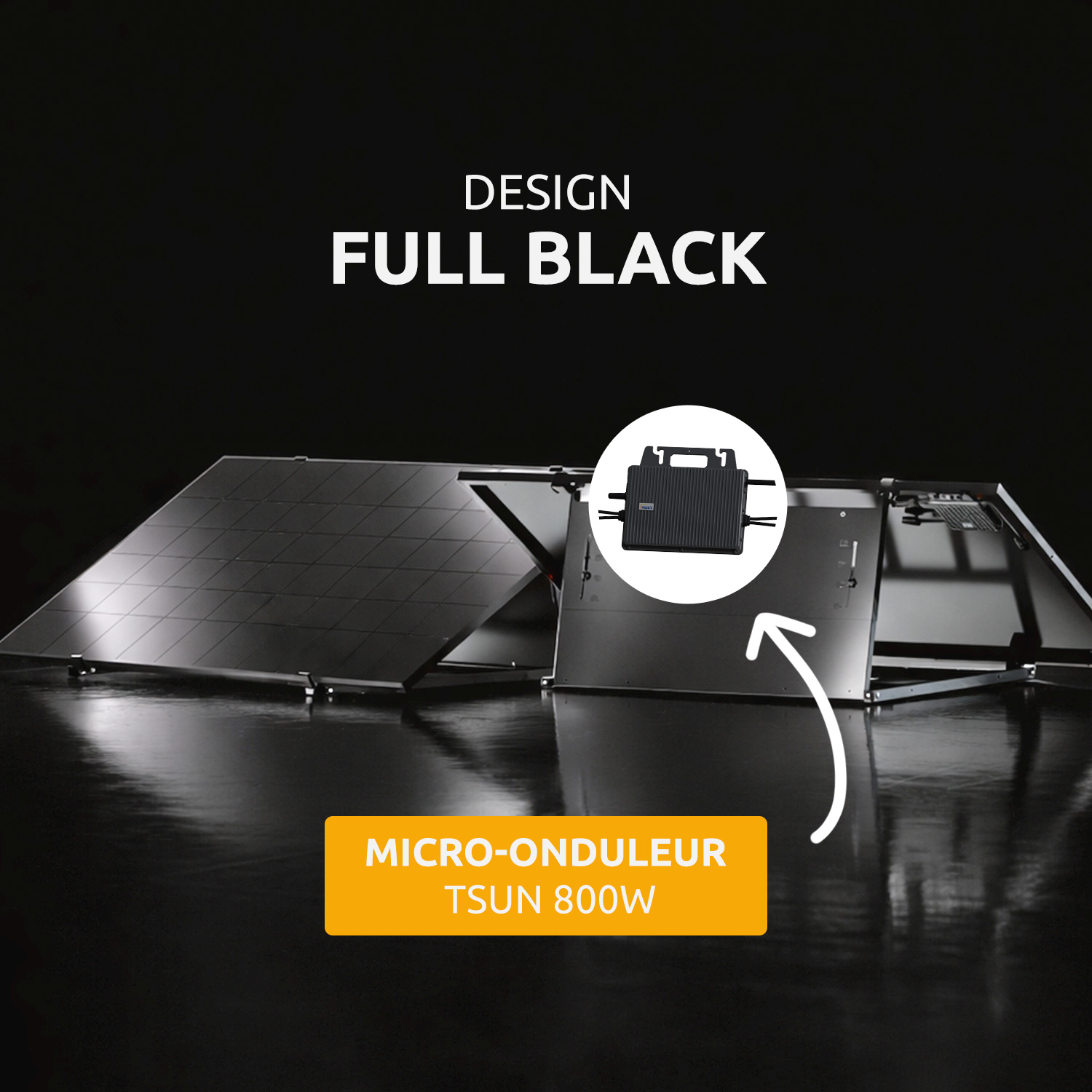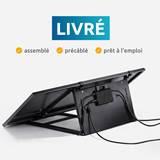 Structure, panneaux et micro-onduleur déjà assemblés. Posez au sol, branchez sur prise standard et c'est parti.